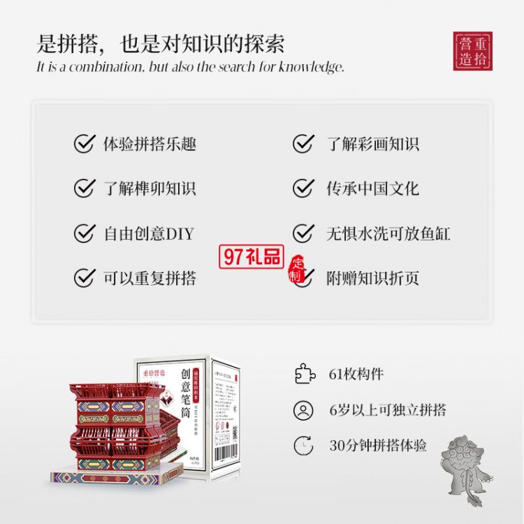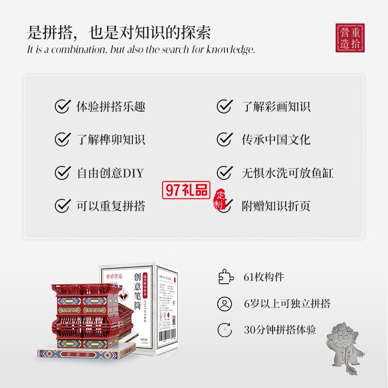 榫卯國(guó)風(fēng)筆筒桌面女生化妝刷收納辦公筆插禮物積木