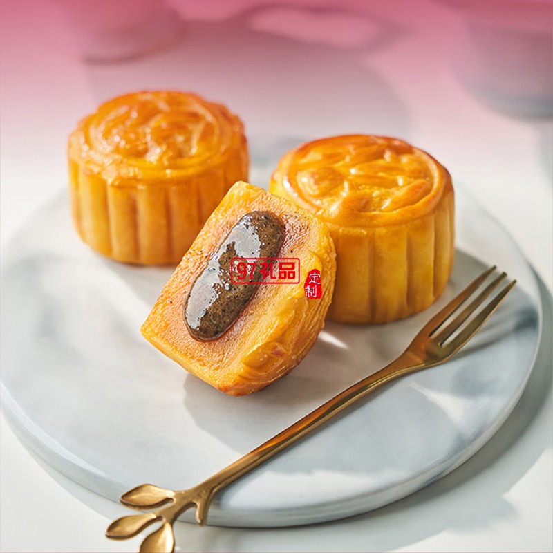 錦華黑松露流心奶黃月餅540g三層精裝禮盒12餅中秋禮品