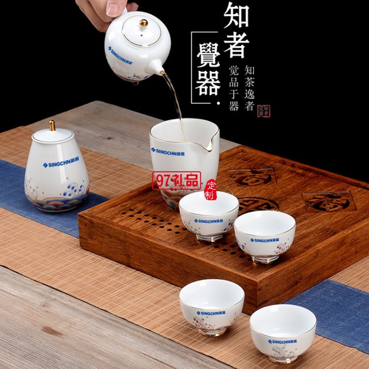 新晨定制新款玉瓷茶具套裝 商務(wù)禮品茶具套裝 可定制logo