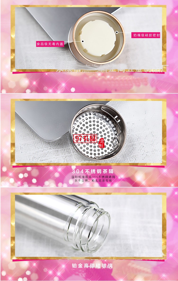 美欣制藥時(shí)尚雙層玻璃杯帶蓋濾網(wǎng)水杯高檔禮品杯 直筒爆款杯 可印logo