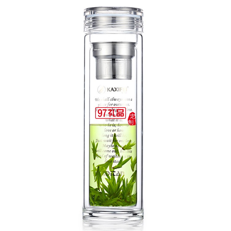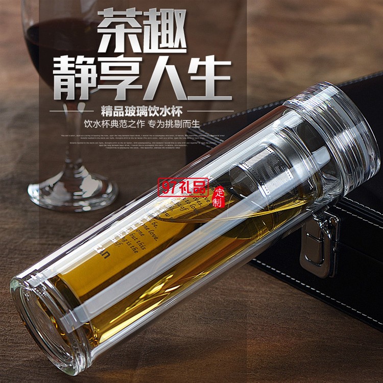 創(chuàng)意雙層高檔玻璃杯透明帶蓋過(guò)濾水晶泡茶杯禮品杯子定制