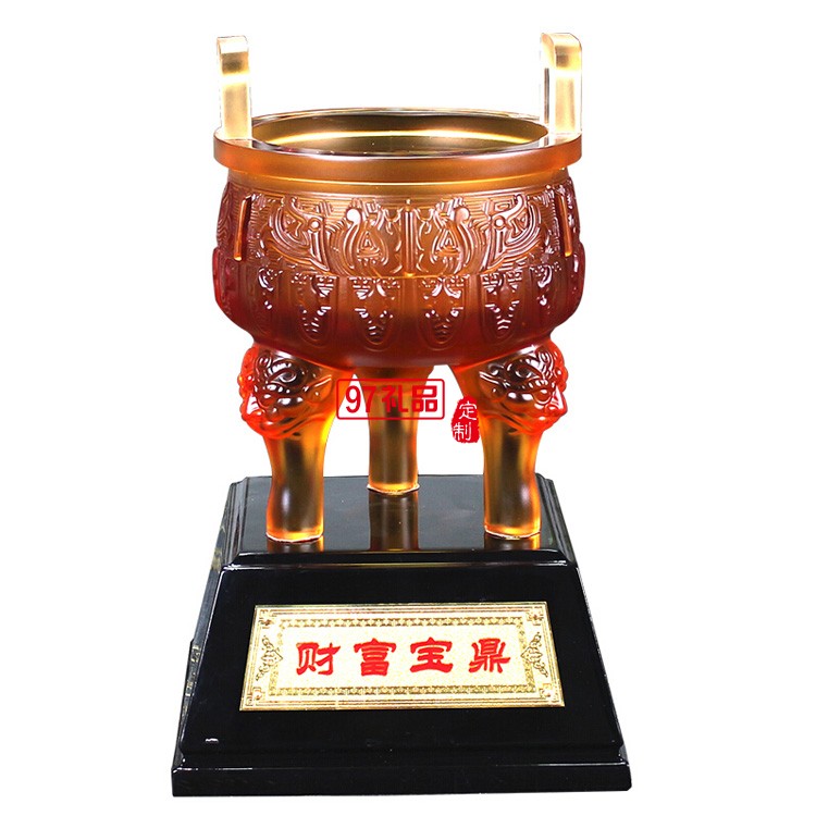 大號(hào)基業(yè)鼎盛琉璃鼎擺件古法琉璃工藝品 可定制LOGO