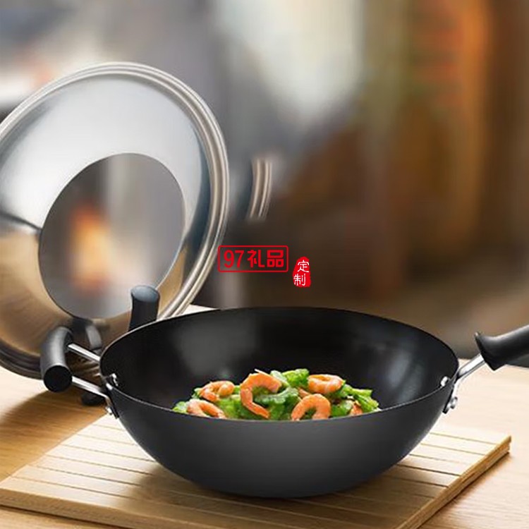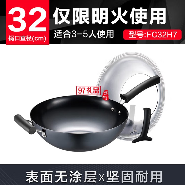 蘇泊爾無(wú)涂層真不銹精鐵炒鍋燃?xì)獬床隋丗C32H7定制公司廣告禮品