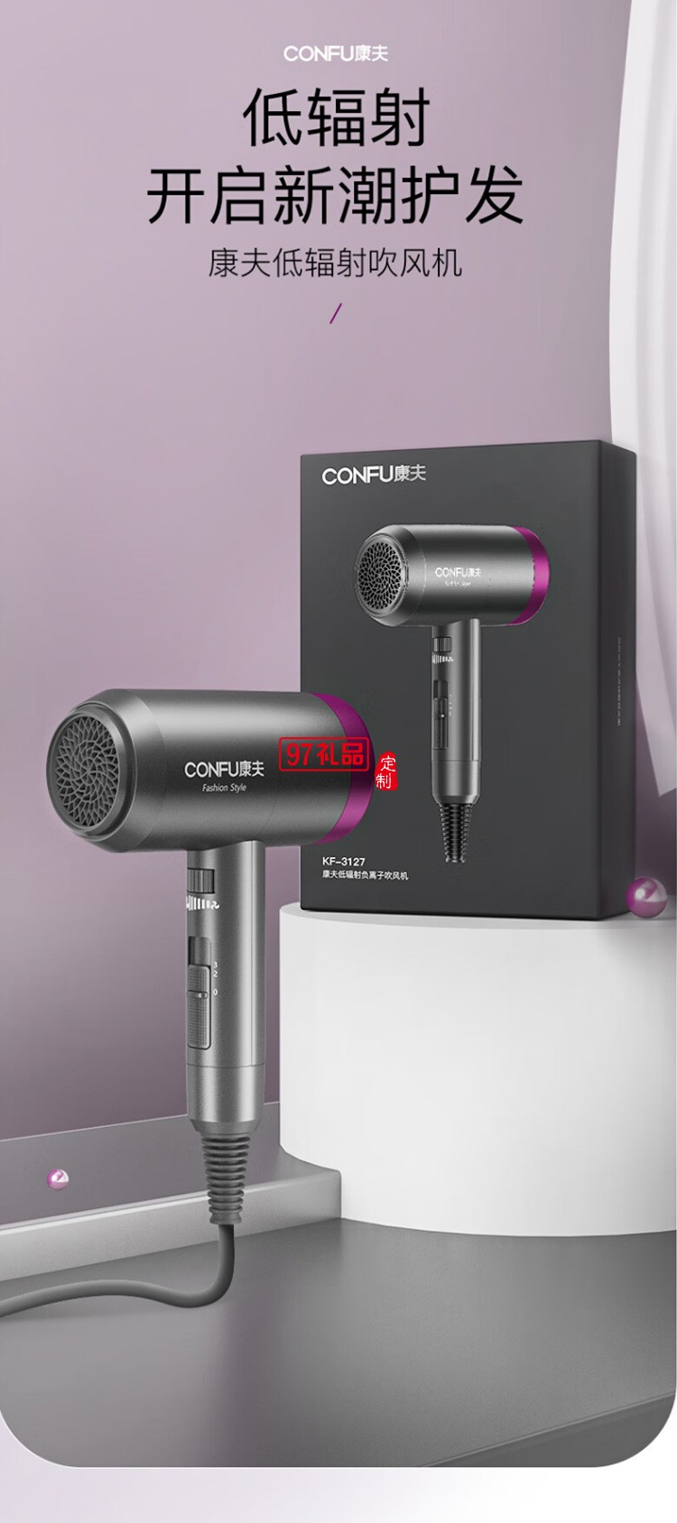 康夫電吹風(fēng)機(jī)大功率電吹風(fēng)速干吹風(fēng)筒KF-3127定制公司廣告禮品