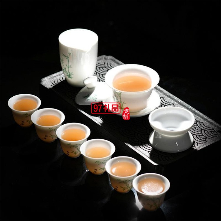 高白陶瓷茶具套裝描金蓋碗茶杯白瓷功夫茶具