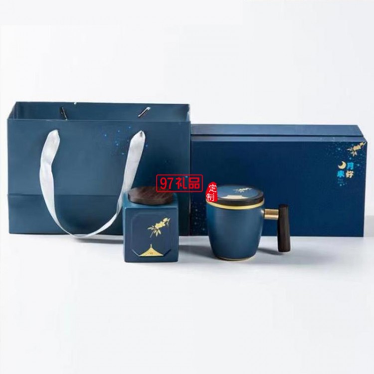 中秋茶具禮盒月來(lái)月好茶具辦公杯茶葉罐禮盒套裝 可定制logo