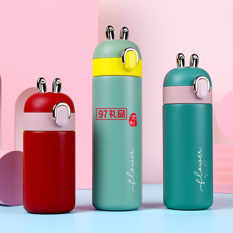 開學(xué)季禮品卡通兔耳朵兒童保溫水杯 糖果色可愛彈跳學(xué)生杯子