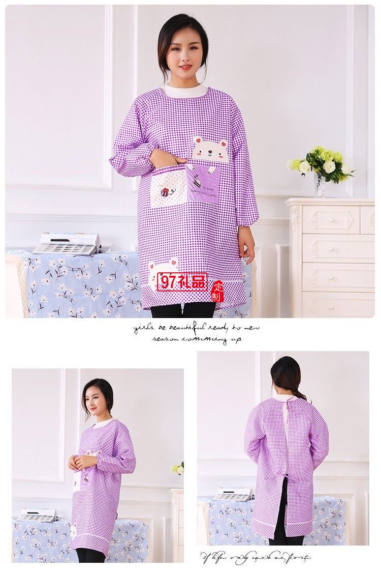 薄款有袖圍裙廚房防污罩衣大人家務(wù)清潔工作服定制公司廣告禮品