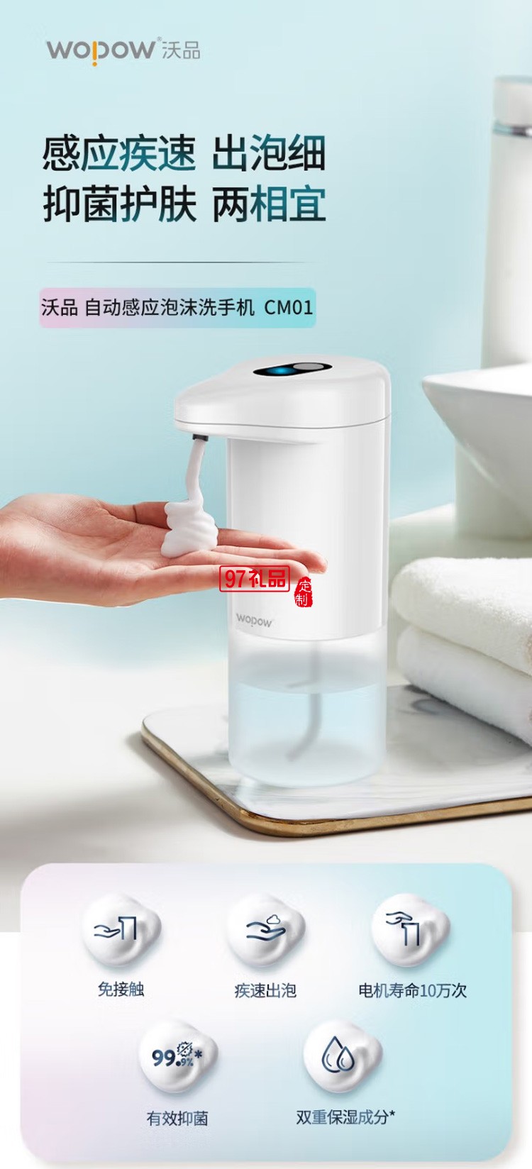 沃品(WOPOW) CM01自動感應(yīng)洗手機 白色定制公司廣告禮品