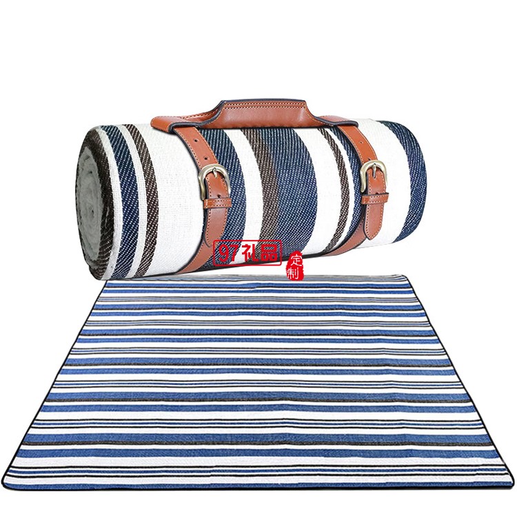 INS風(fēng)皮拎手野餐墊MKZ-022 藍(lán)白條紋 定制公司廣告禮品