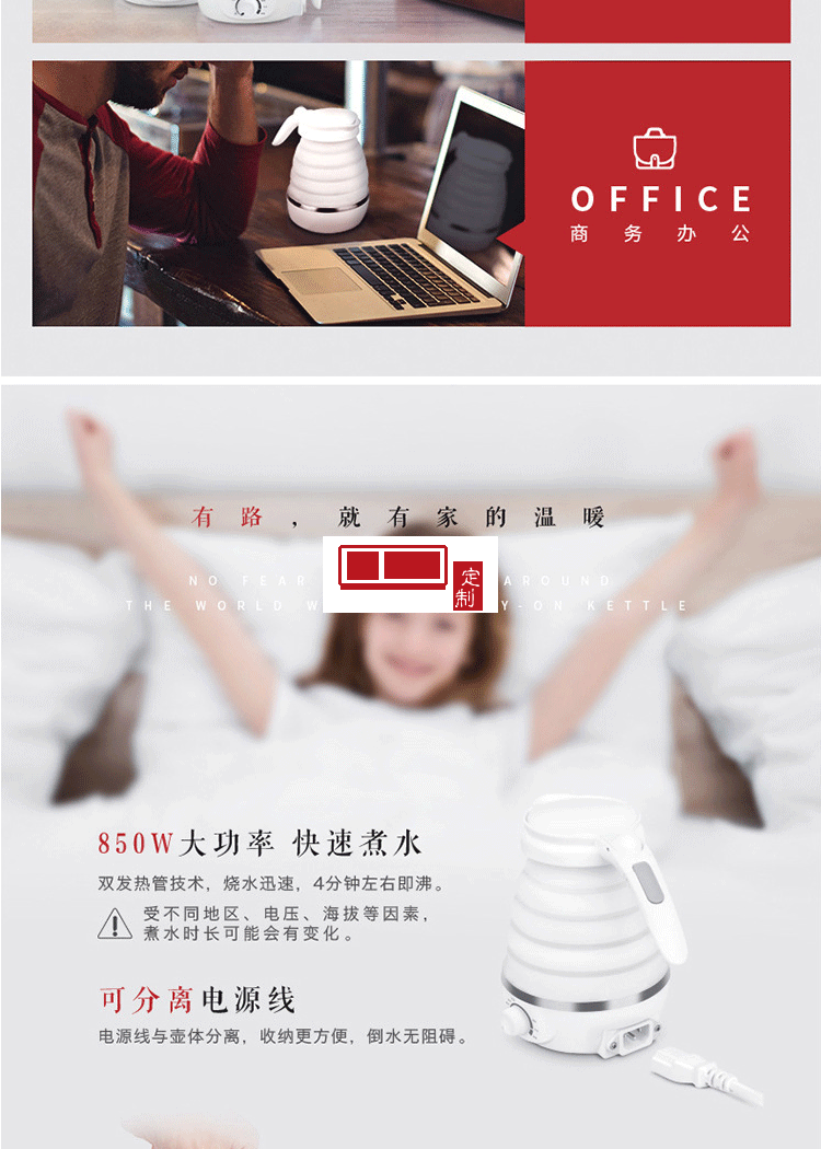 | 刻度標(biāo)示 | 壺體標(biāo)示 | 電熱水壺材質(zhì) | 食品級(jí)硅膠+304不銹鋼 | 電熱水壺最大功率 | 1000W以下 |