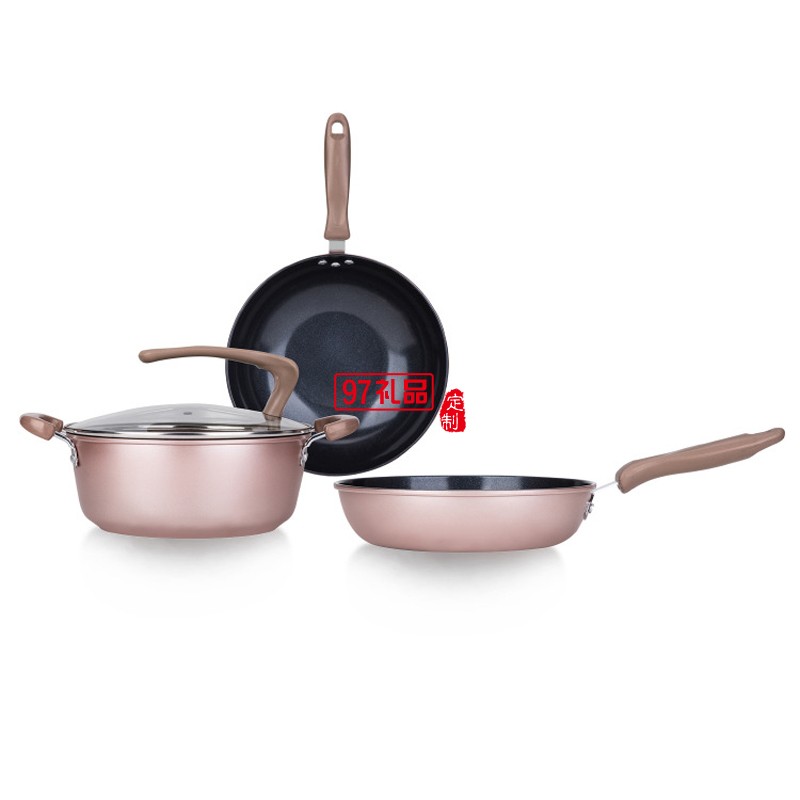 定制不粘鍋三件套鍋具組合不沾炒鍋加厚平底鍋送客戶禮品員工福利