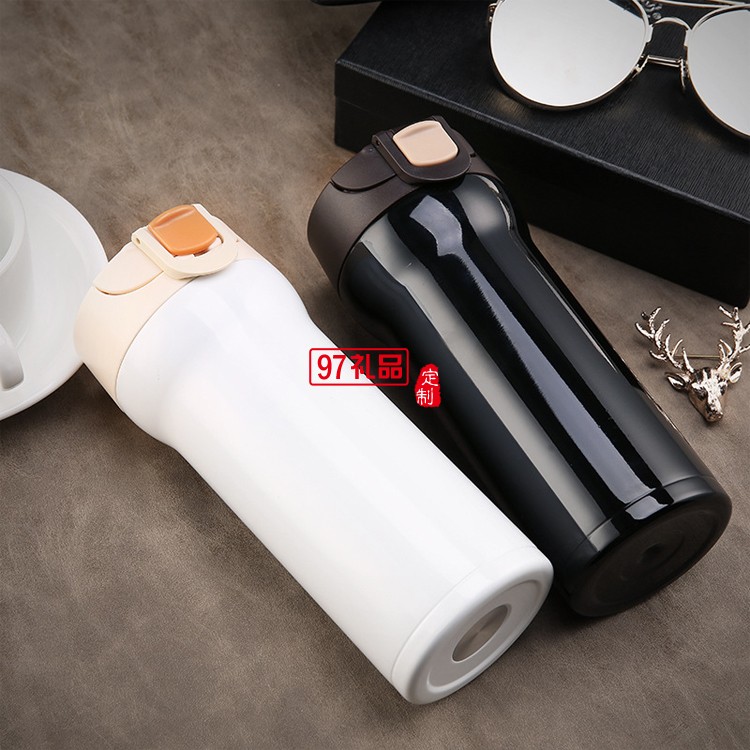 科云定制 鎖扣咖啡杯保溫杯創(chuàng)意水杯子雙層不銹鋼真空禮品杯運動水壺