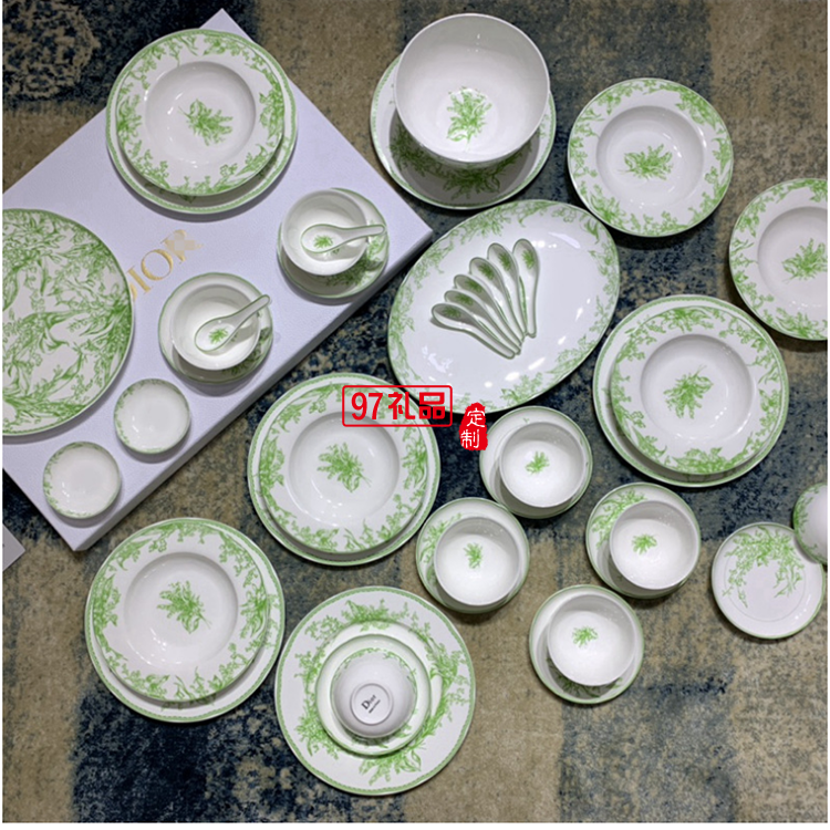 Do鈴蘭系列41頭餐具套裝禮盒DIO MAISON高級骨瓷綠色喬遷結(jié)婚