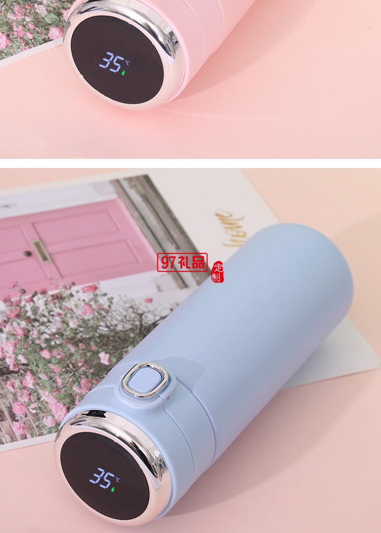 智能測(cè)溫彈跳豌豆杯保溫杯304不銹鋼禮品杯子定制