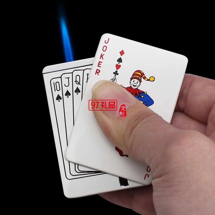創(chuàng)意撲克造型防風藍焰打火機金屬直沖氣體點煙器