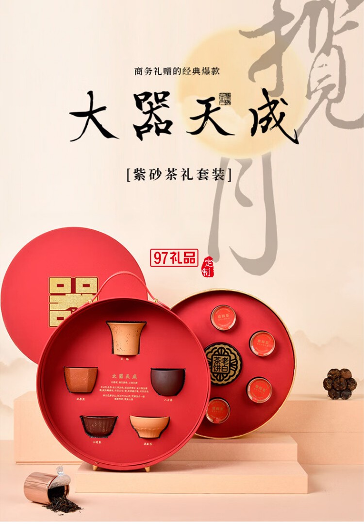 配置  · ①大器天成·紫砂五福杯套組×1套(5只)