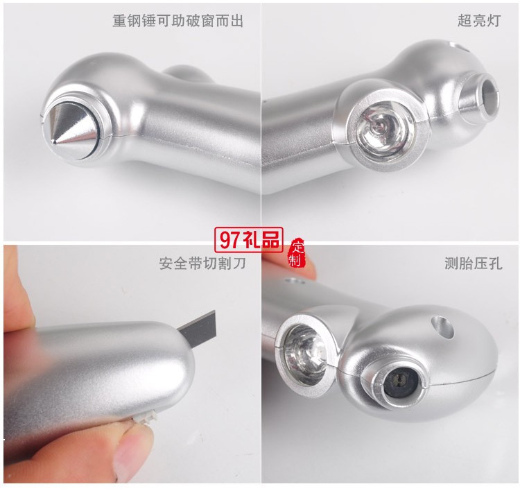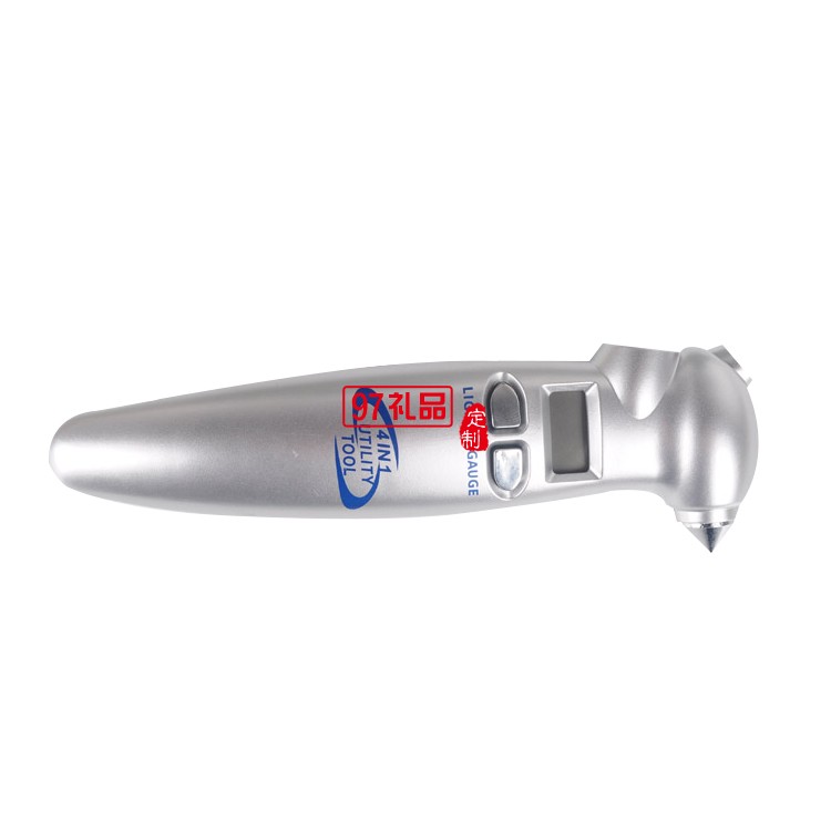 四合一 工具,時尚外形 安全刀,安全錘,手電筒,胎壓計 進口芯片,高精度±1PSI,準(zhǔn)確測量輪胎壓力 四個單位:PSI、Kpa、Bar、Kg/cm2 全世界通用 正確的輪胎壓力,可以減少汽車損耗,節(jié)省輪胎,減少油耗,防止爆胎,確保行車安全