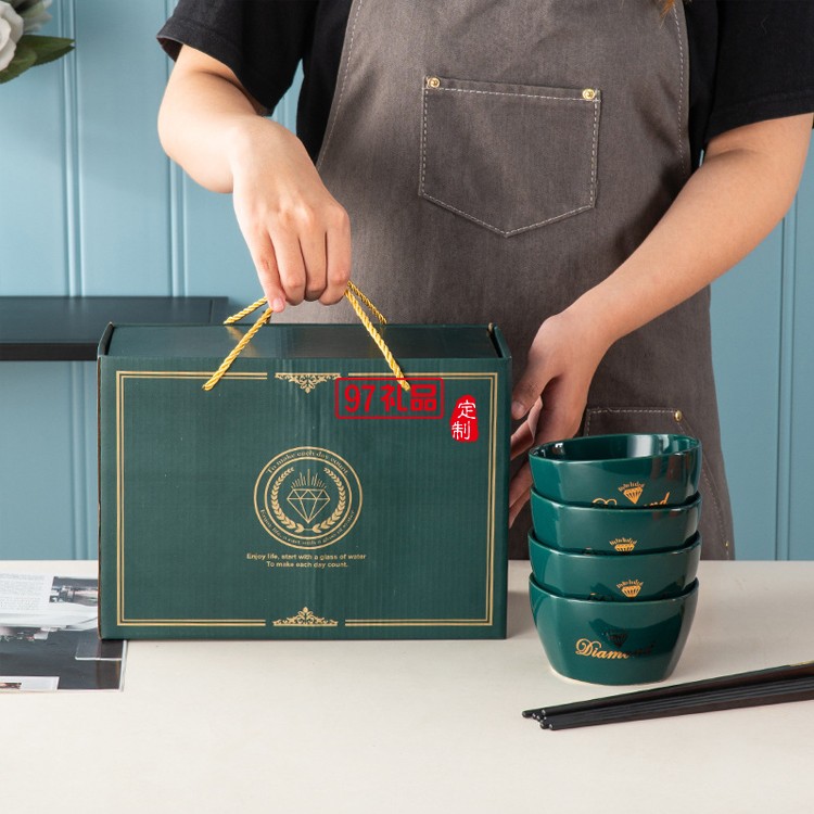 碗筷套裝方碗陶瓷餐具禮盒套裝碗實(shí)用禮品LOGO