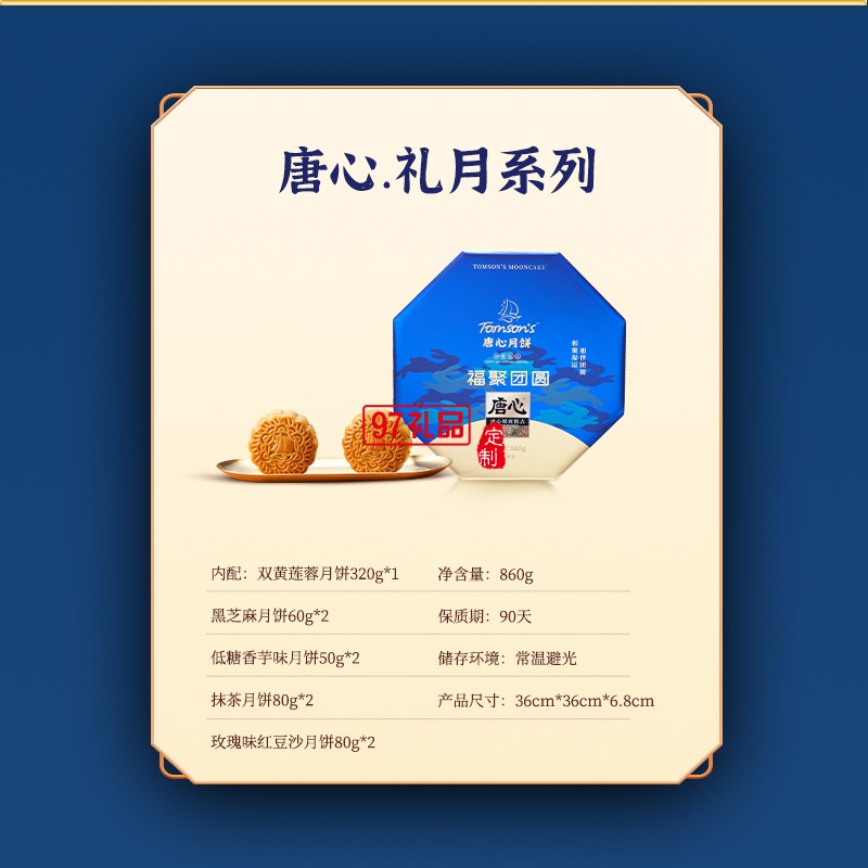 唐心福聚團(tuán)圓月餅禮盒裝860g中秋送禮蛋黃蓮蓉月餅紅豆沙月餅