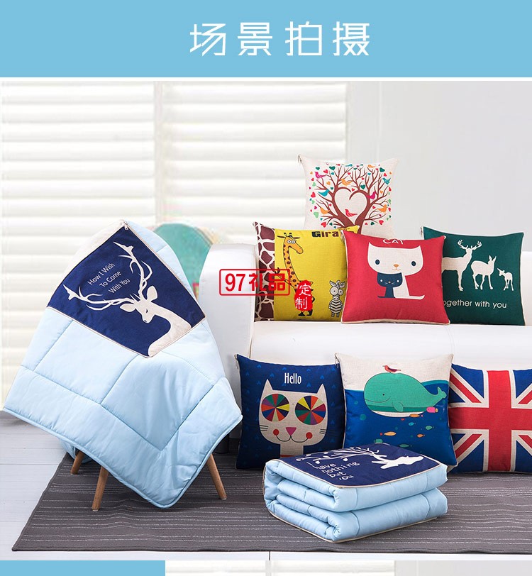 滿版印刷棉麻抱枕被,定制企業(yè)logo