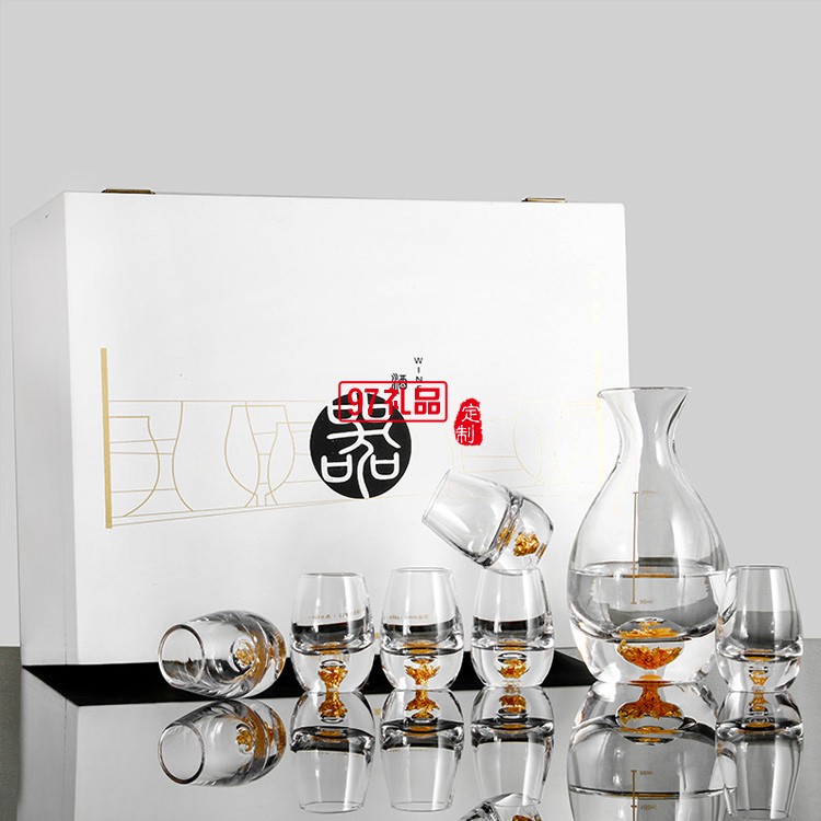 分酒器 水晶玻璃茅臺小酒杯 創(chuàng)意金箔烈酒杯酒壺酒具禮盒套裝