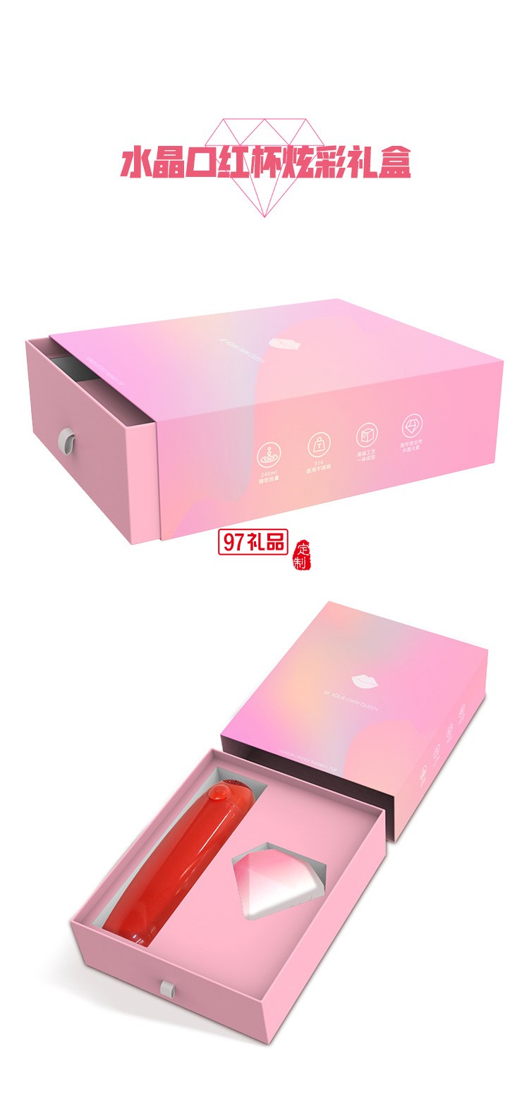 紅帕口紅杯高檔保溫杯水晶杯禮盒女生女神禮物創(chuàng)意保溫杯子精致小巧便攜生日
