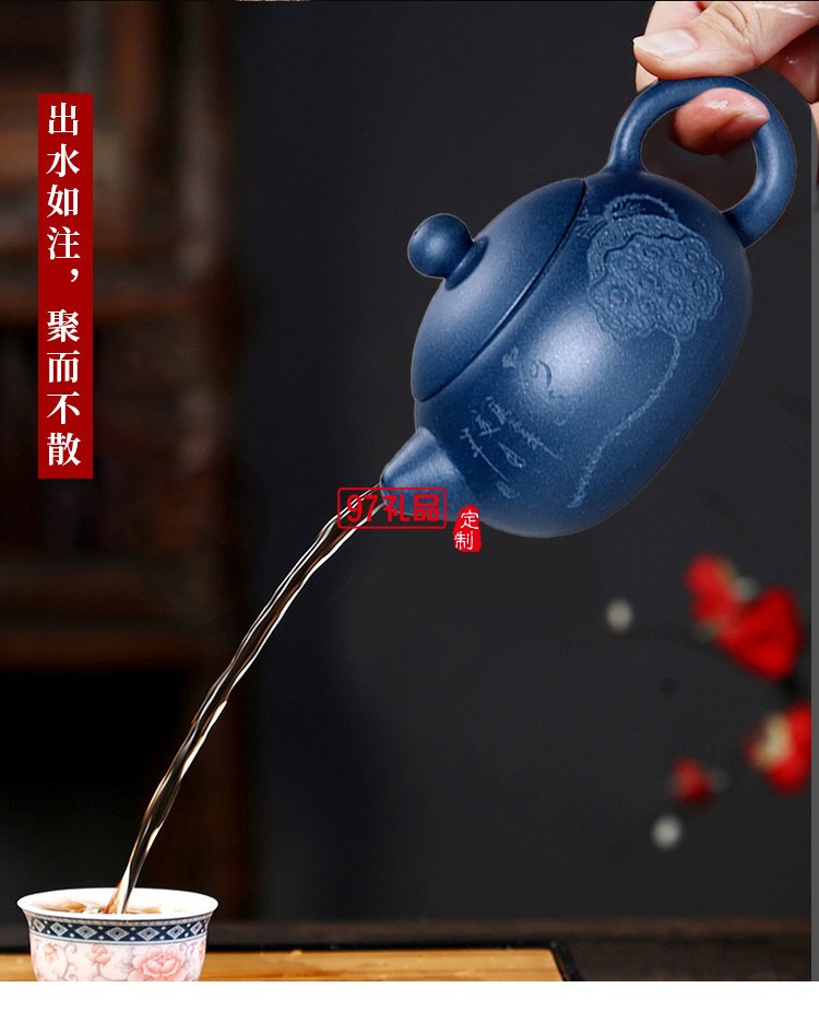 宜興紫砂壺西施茶壺天青泥中品全手工刻繪茶具