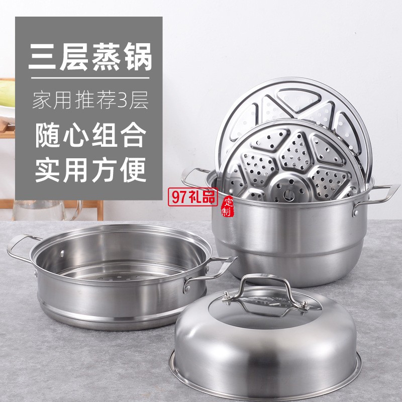 加厚不銹鋼鍋三層蒸鍋 復(fù)底雙層不銹鋼蒸鍋湯鍋實(shí)用禮品鍋具