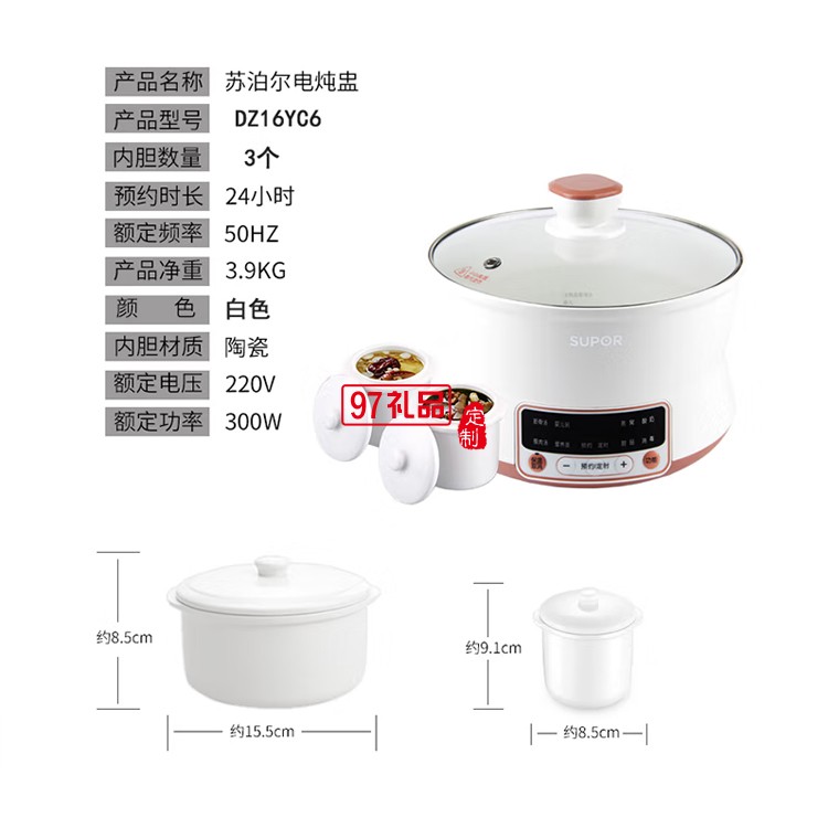 蘇泊爾電燉鍋隔水電盅煮粥熬粥煲湯陶瓷 DZ16YC6定制公司廣告禮品