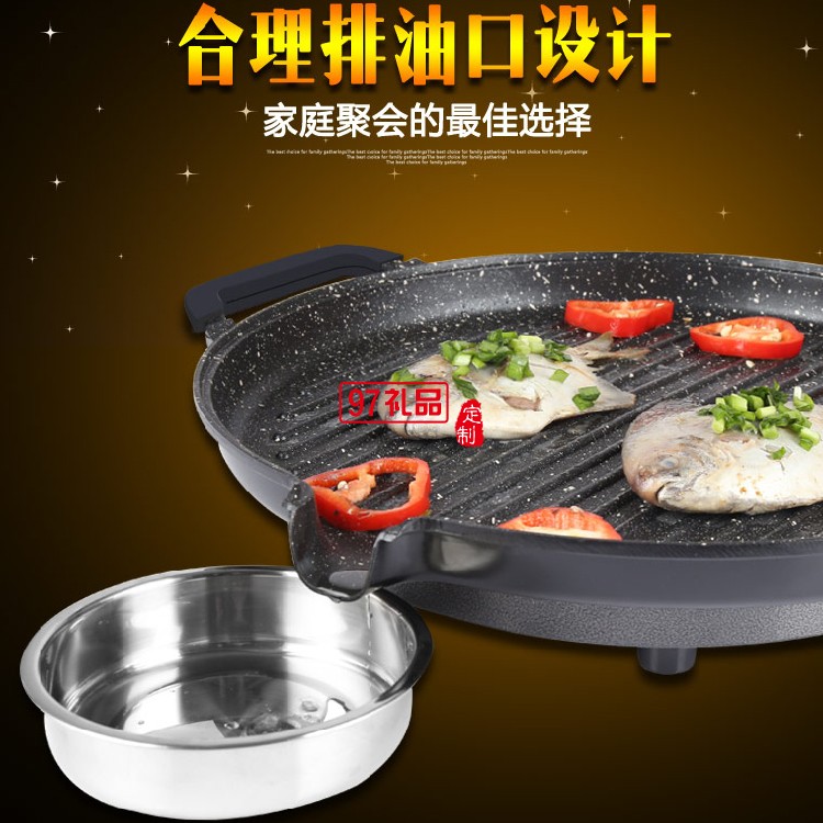 無(wú)煙電烤盤麥飯石不粘電烤爐燒烤爐圓形烤肉機(jī)定制公司廣告禮品