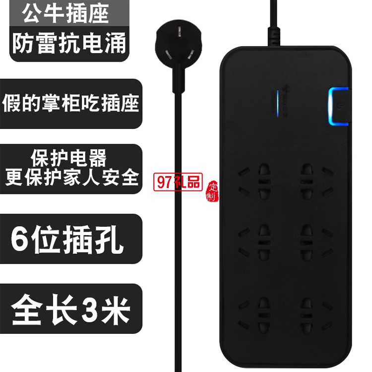 公牛GN-H3060插座插排拖線(xiàn)板抗電涌 超大間距3米定制公司廣告禮品