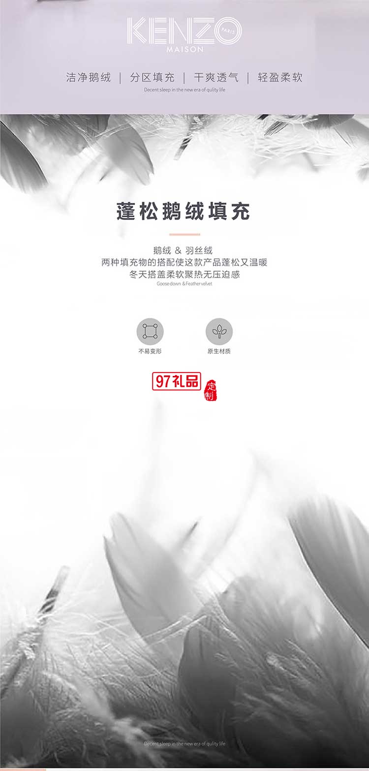 KENZO 鵝絨分區(qū)暖芯被保暖舒適透氣被子