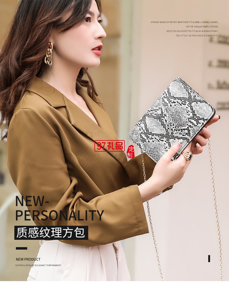 新款蛇紋小方包悠閑百搭單肩斜跨手機(jī)包禮品包