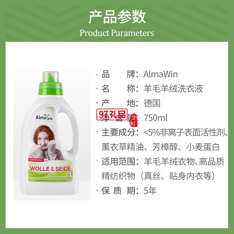 AlmaWin羊毛羊絨真絲專用洗衣液定制公司廣告禮品