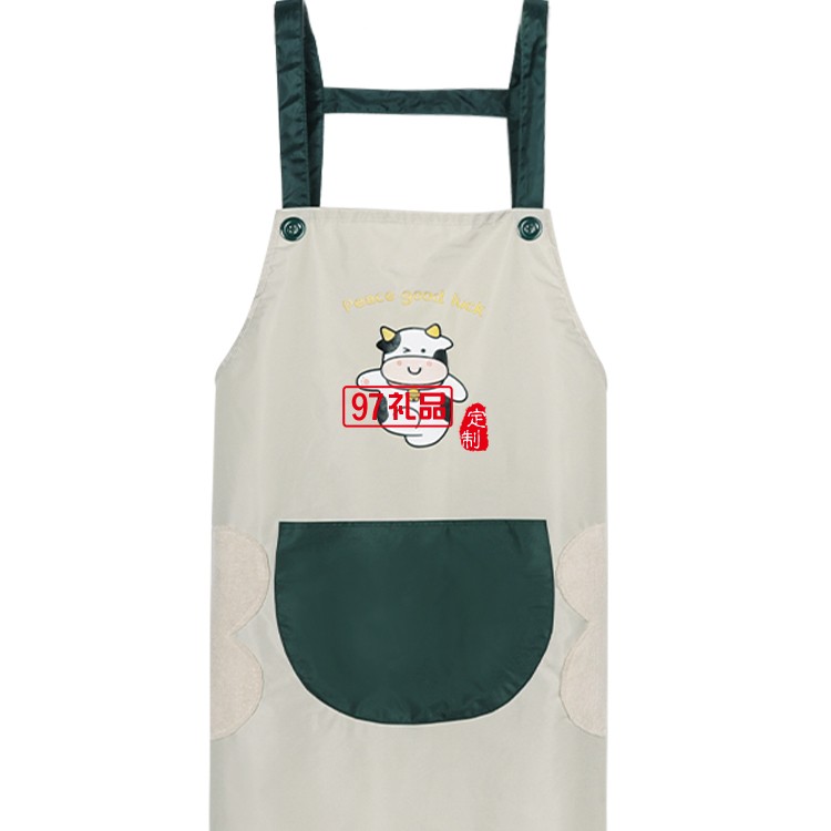 廚房防水油圍裙家用男女韓版做飯可擦手可愛(ài)卡通小牛圍腰定制公司廣告禮品
