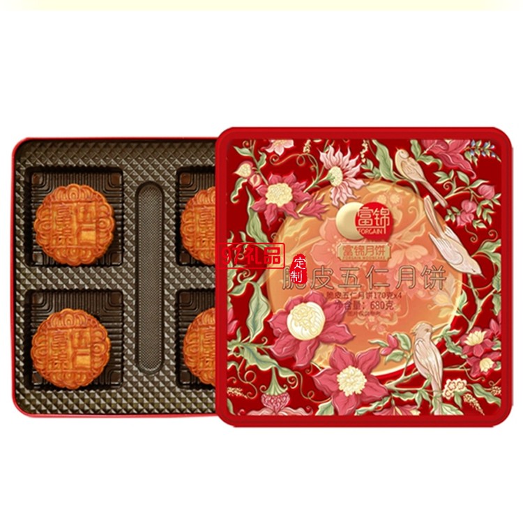 脆皮伍仁廣東富錦老廣式月餅團(tuán)購福利送禮高端鐵盒